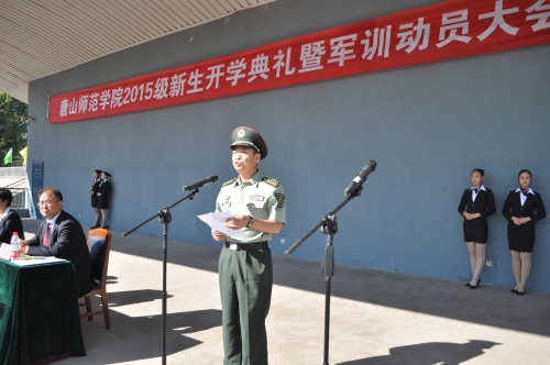 党委常委边宏广作军训动员并宣布军训团建制。他说,军训生活是同学们在大学校园里迎来的第一个挑战,希望大家以饱满的精神状态积极参与军事训练,学习基本的军事技能,养成遵规守纪的优良作风,锤炼坚韧不拔的意志品质,练就过硬的身体素质,培养互相协作的团队精神,坚定立志成才的决心和成就中国梦想的信念。他要求同学们要不畏辛苦,严守纪律;虚心学习,提高素质;团结协作,勇争第一。他希望同学们把握住这人生中虽然艰苦但弥足珍贵的机会,战胜自我,练出水平,以饱满的姿态和昂扬的斗志步入绚丽美好的大学新生活!