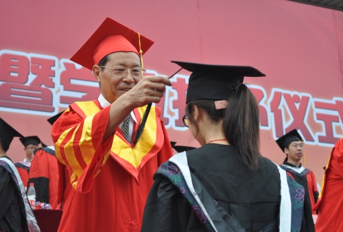 接着,范永胜院长为毕业典礼致辞。他代表学校对2015届毕业生表示热烈祝贺,肯定和赞扬了毕业生四年来的付出和收获,向辛勤培养毕业生的广大教职工致以崇高的敬意!范院长还劝勉同学们要学会树立信心,在困难面前永不低头,在挫折面前永不言败;保持恒心,在扑朔迷离的世态面前,始终坚持在学生时代树立起来的美好理想,相信梦想总会实现;播撒爱心,面对生活始终保持一颗热爱生活、热爱家人、热爱朋友、热爱人民、热爱国家和民族的赤子之心。最后,范院长祝同学们在新的人生道路上鹏程万里、前程似锦、幸福安康!